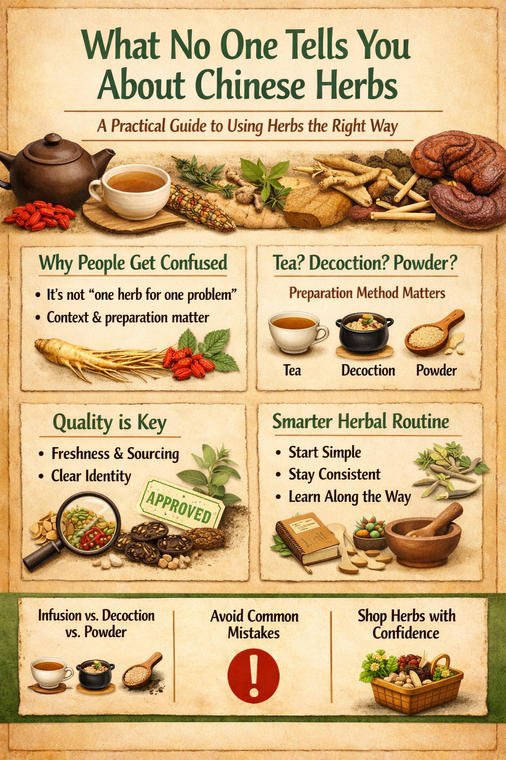 The biggest reason people struggle with Chinese herbs is usually not the herb itself. More often, it is a mismatch between the herb, the person, the form of the product, the preparation method, the quality of the material, and how consistently it is used.